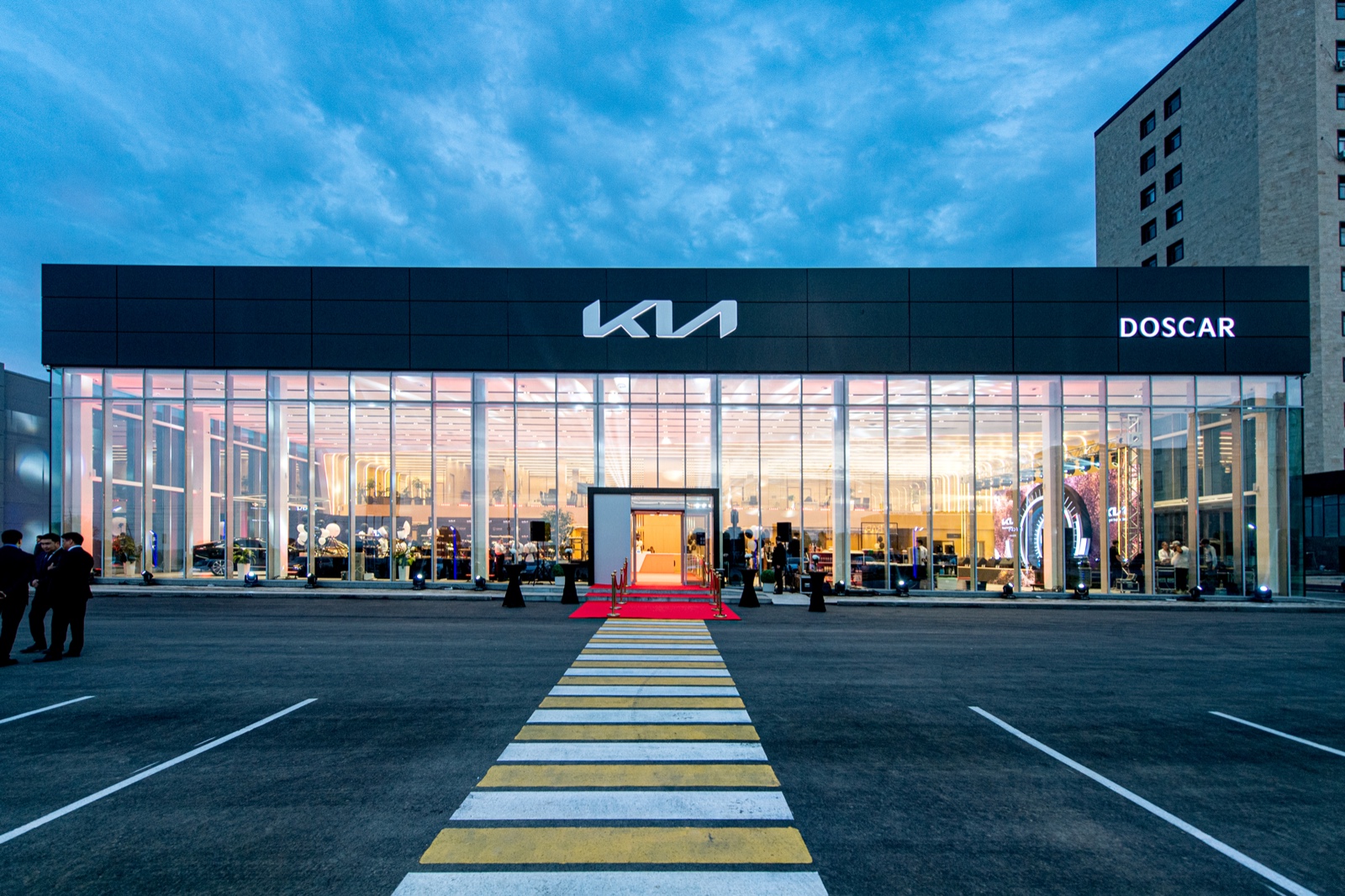 Расположенный по проспекту Байдибек би новый дилерский центр Kia DOSCAR является первым из трёх автосалонов комплекса, который размещен на общей площади в 3,8 га с суммарным объемом частных инвестиций более 6,5 млрд тенге. В итоге весь комплекс обеспечит рабочими местами более 400 человек.